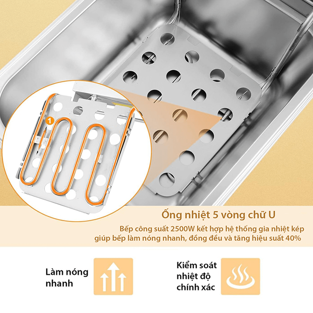 ✔️ Bếp chiên có hệ thống gia nhiệt kép giúp bếp nhanh sôi và nhiệt độ luôn ổn định.
