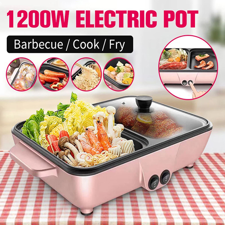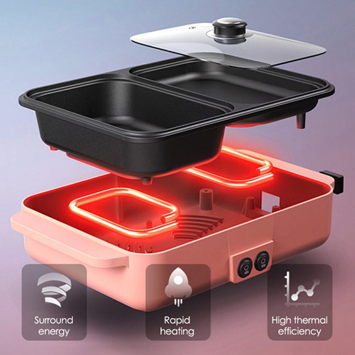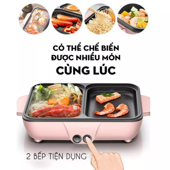 - Nồi lẩu nướng điện mini 2 ngăn Chống Dính Đa Chức Năng mẫu mới nhất hiện nay