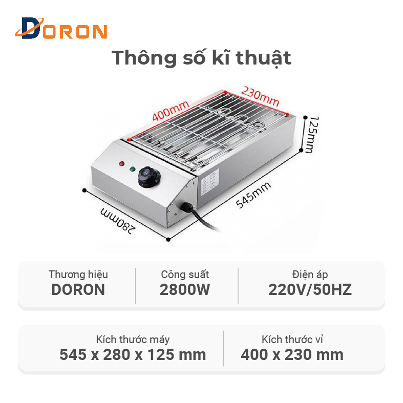 Bếp nướng bbq điện là thiết bị chuyên dùng hỗ trợ đắc lực cho các quán kinh doanh nướng thịt xiên, hải sản với công suất cao 2800W một cách nhanh chóng