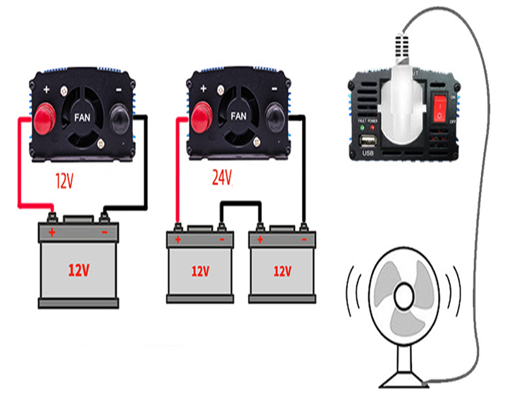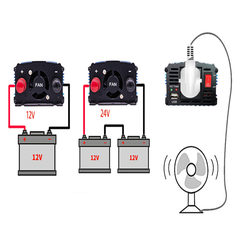 - Với bộ kích điện công suất 1200W thì đáp ứng được các nhu cầu sài điện khác nhau: bóng đèn, quạt, tivi led,...khi sử dụng các sản phẩm, bạn cần xem công suất của thiết bị đó hoặc tổng công suất của các thiết bị có vượt quá công suất của bộ đổi điện hay không?
