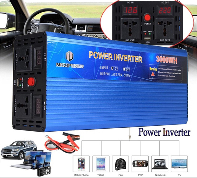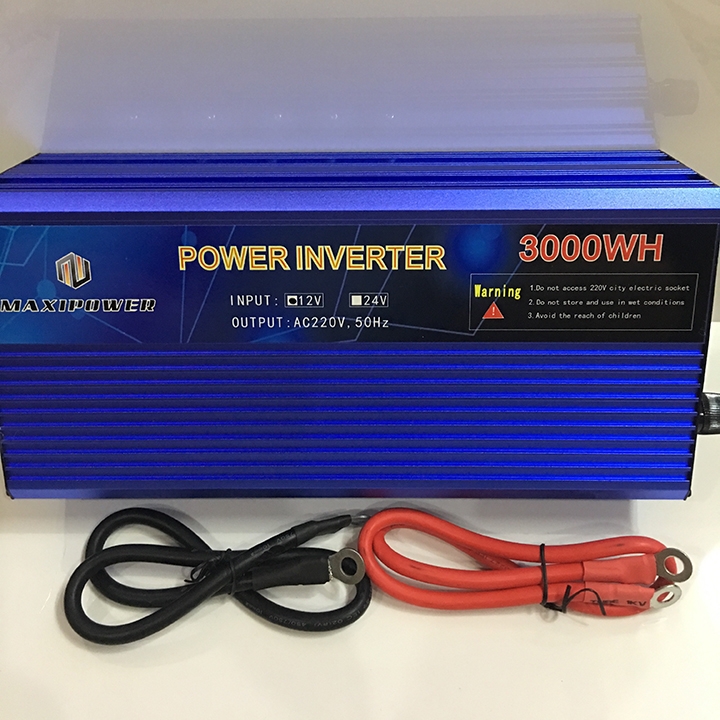 - Xin giới thiệu sản phẩm Bộ kích điện 24V - 220V - 3000W MAXIPOWER chức năng dùng đổi nguồn từ bình ắc quy 24V sang 220V sử dụng cho các thiết bị điện trong gia đình.