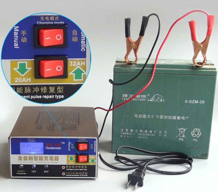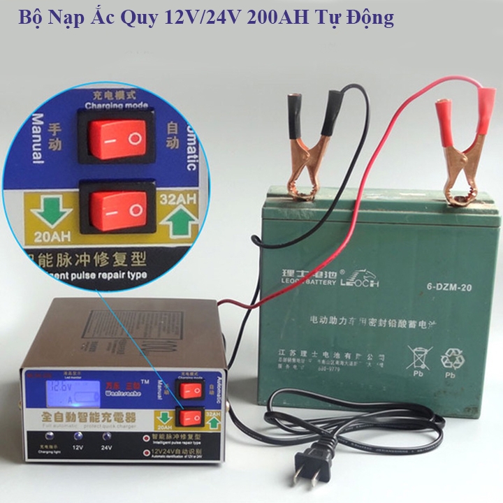 - Bộ Sạc Ắc Quy Có sạc tại nhà thì bạn tự sạc theo nhu cầu : Sạc bình ắc quy máy ,xe ôto, xe con, xe tải, ắc quy điện nhà, pin v.v... xe để lâu, xe ít chạy hay hết bình, chỉ cần dung tích bình ắc quy từ 12V/24v 3.5ah - 12V 200AH (dung tích bình) đều có thể sử dụng, tự ngắt khi sạc đầy, có IC bảo vệ, màn hình hiển thi chế độ sạc, tự động ngắt khi đầy, tự động nhận biết bình 12v/24v.
