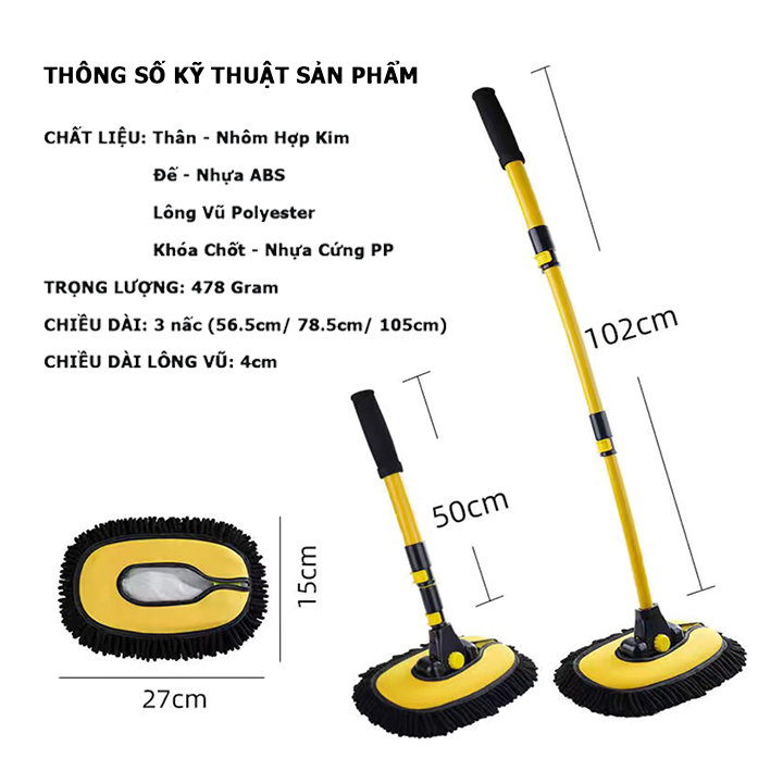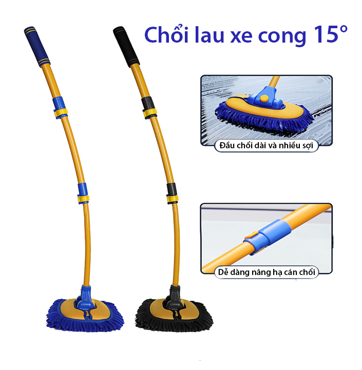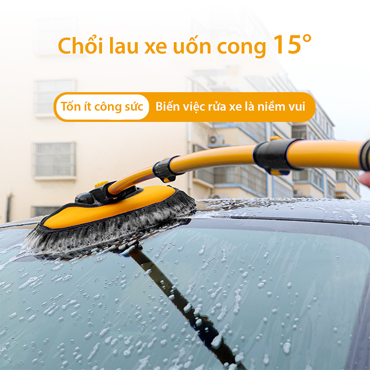 - Chổi rửa xe 3 nấc cong 15 độ giúp tối ưu mọi địa điểm lau rửa trên xe ô tô