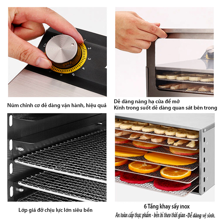 - Kính trong suốt : theo dõi được quá trình làm khô thực phẩm
