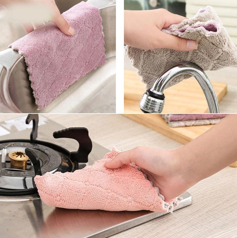 - Khăn lau bếp giúp công việc rửa chén và việc vệ sinh bếp núc trở nên nhanh chóng, hiệu quả hơn.
