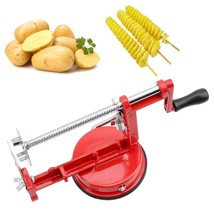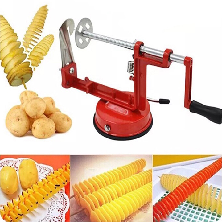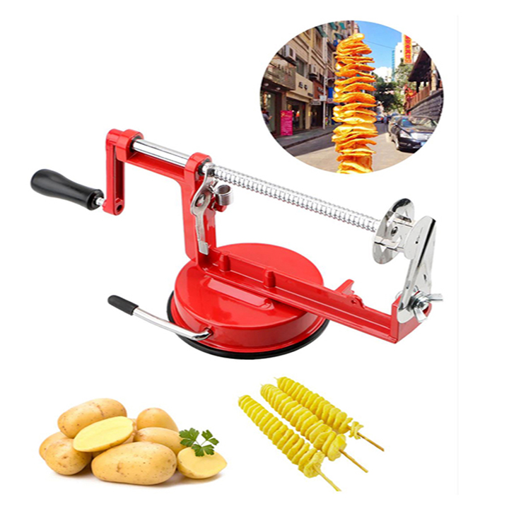 - Máy khoai tây lốc xoáy còn được gọi là máy cắt khoai tây xoắn vòng. Tháo lắp dễ dàng, kích thước nhỏ nhẹ, dễ vận chuyển và sử dụng