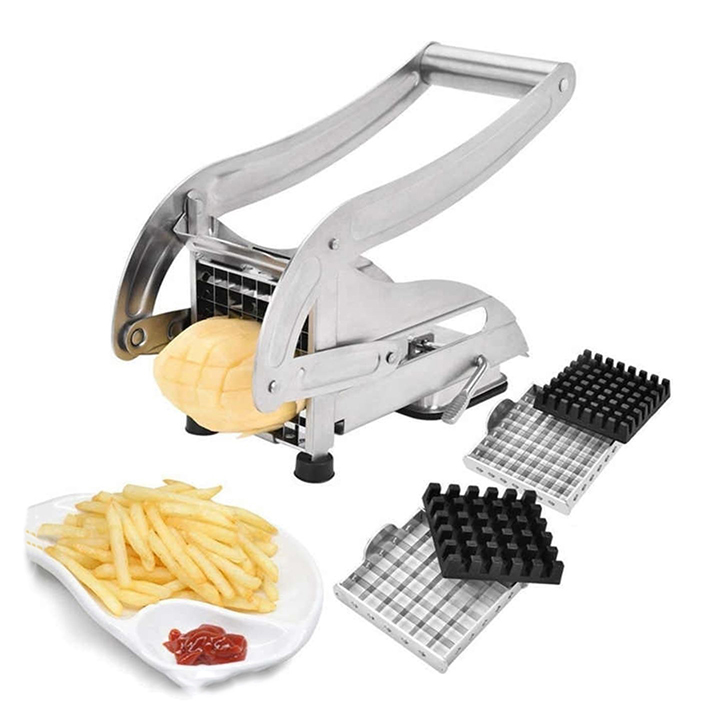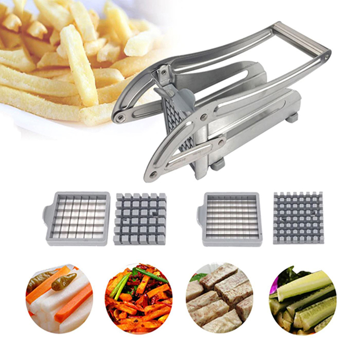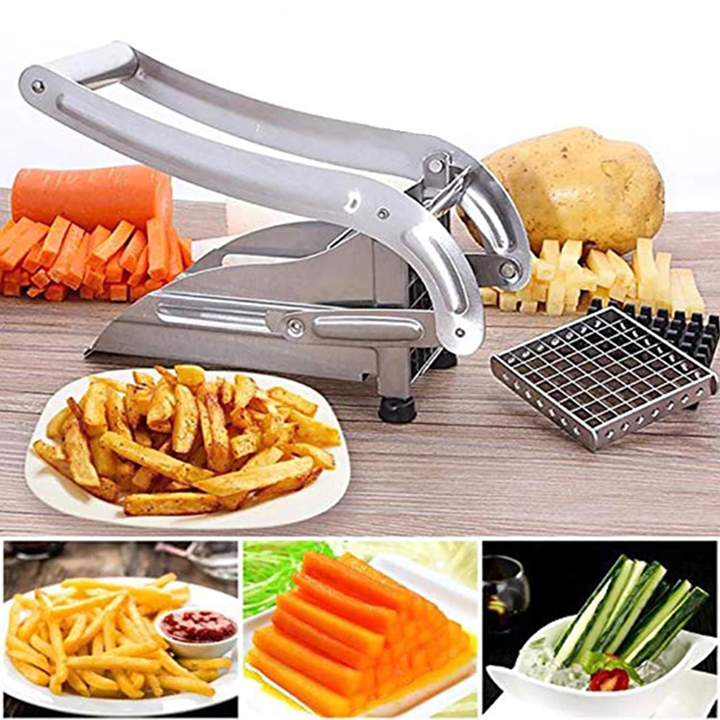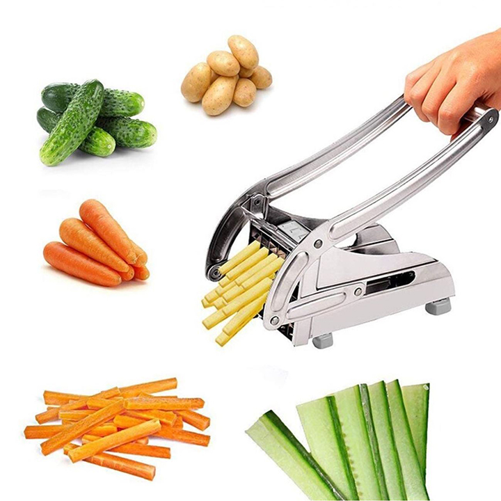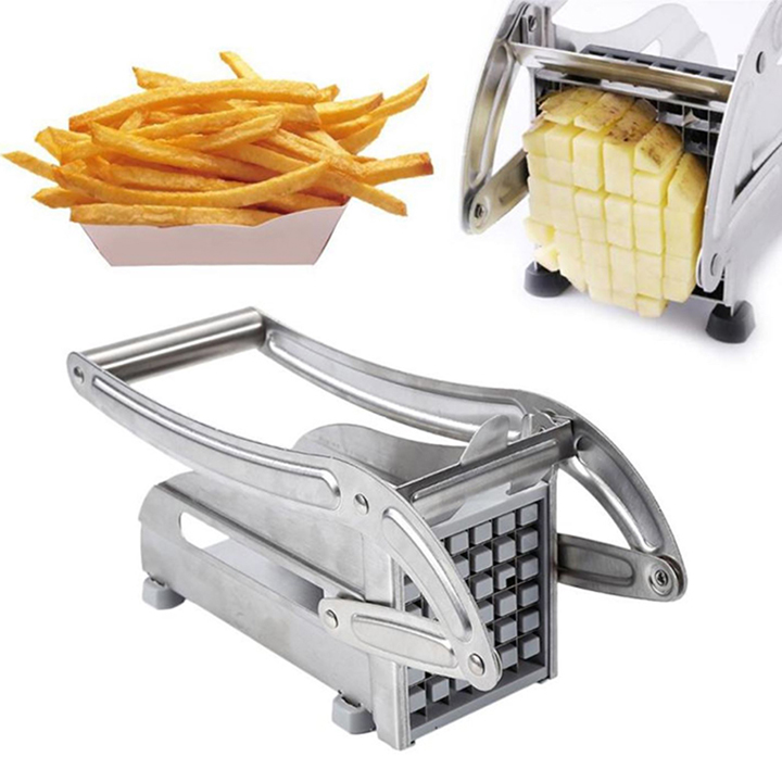 - Giờ đây với dụng cụ cắt khoai tây chiên siêu tốc, việc cắt khoai tây để chiên chỉ trong nháy mắt. Thật đơn giản, chỉ cần đặt dụng cụ lên củ khoai đã bỏ vỏ sạch, dung 2 tay ấn mạnh xuống, thế là ta đa có các miếng khoai tây chiên như ý.