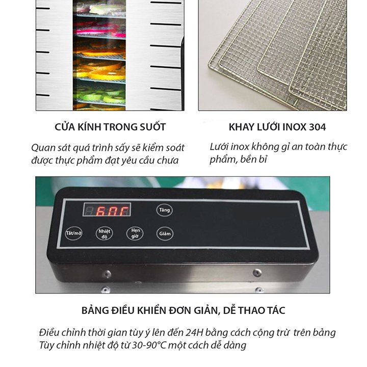 🔥 Kính trong suốt : theo dõi được quá trình làm khô thực phẩm