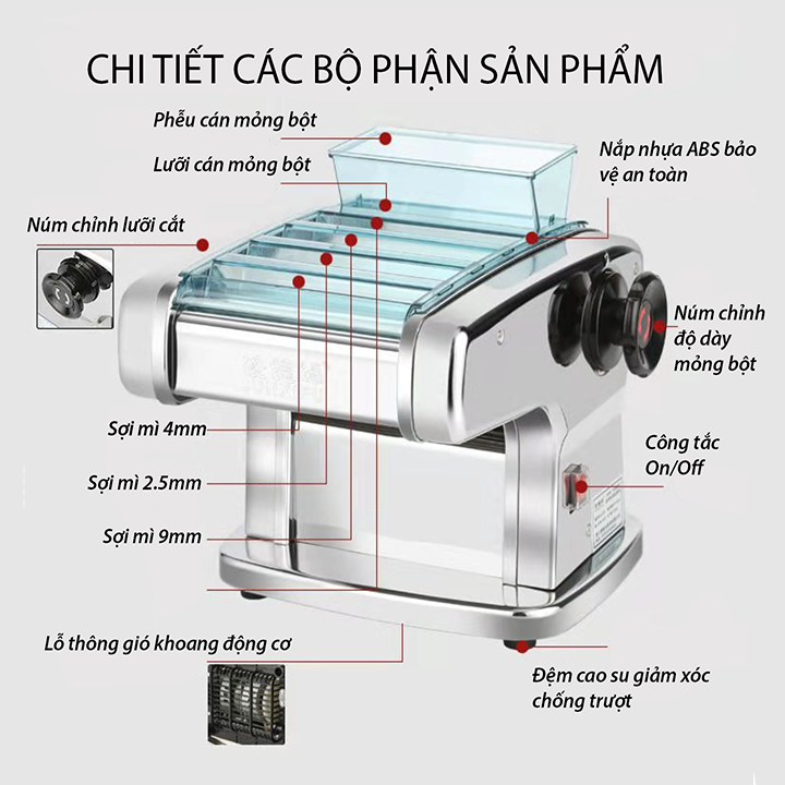 ♦️ Chức năng: Cán bột, cắt sợi mì, cán mực, làm vỏ bánh bao, sủi cảo, bánh canh,...