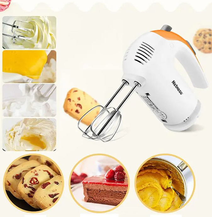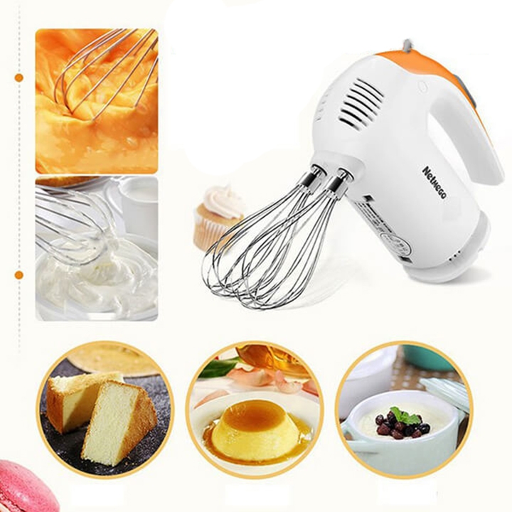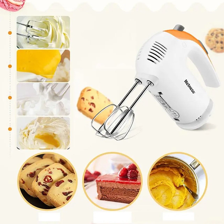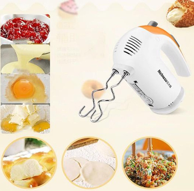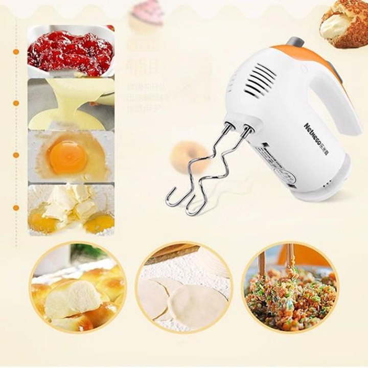 - Máy đánh trứng với 5 tốc độ quay và nút tăng cường giúp đánh trứng và trộn bột nhanh hơn