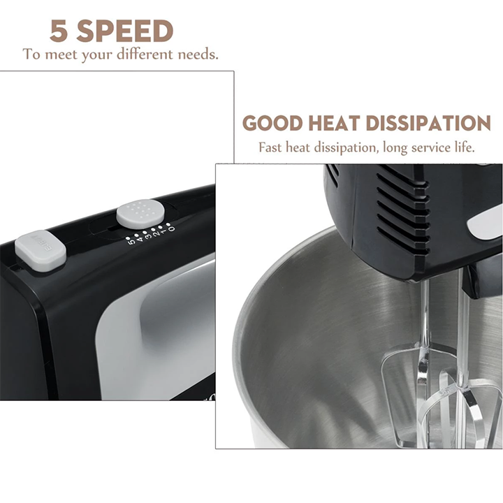 💥 5 tốc độ đánh: Máy có 5 tốc độ hoạt động phù hợp với từng hỗn hợp giúp máy đánh bột, đánh trứng
