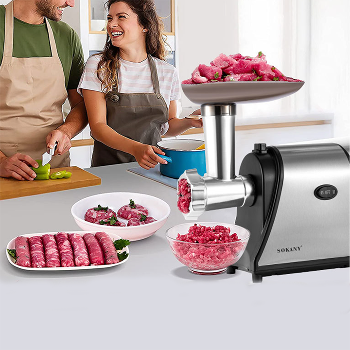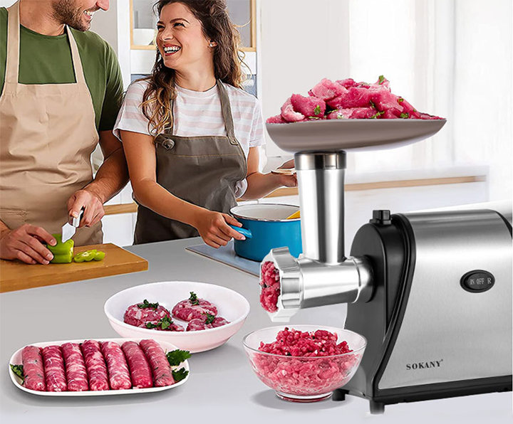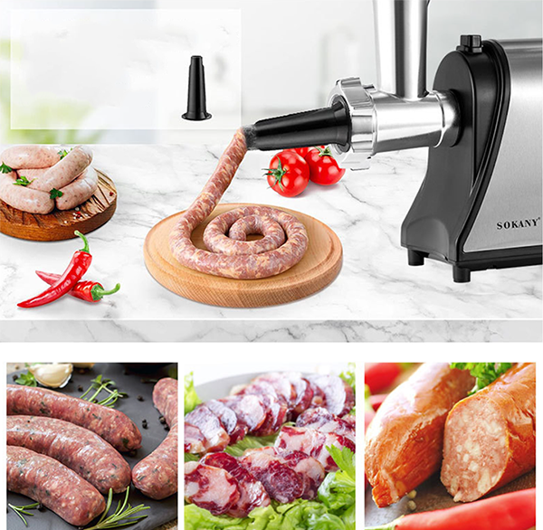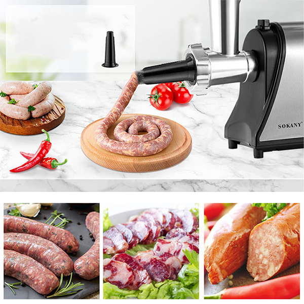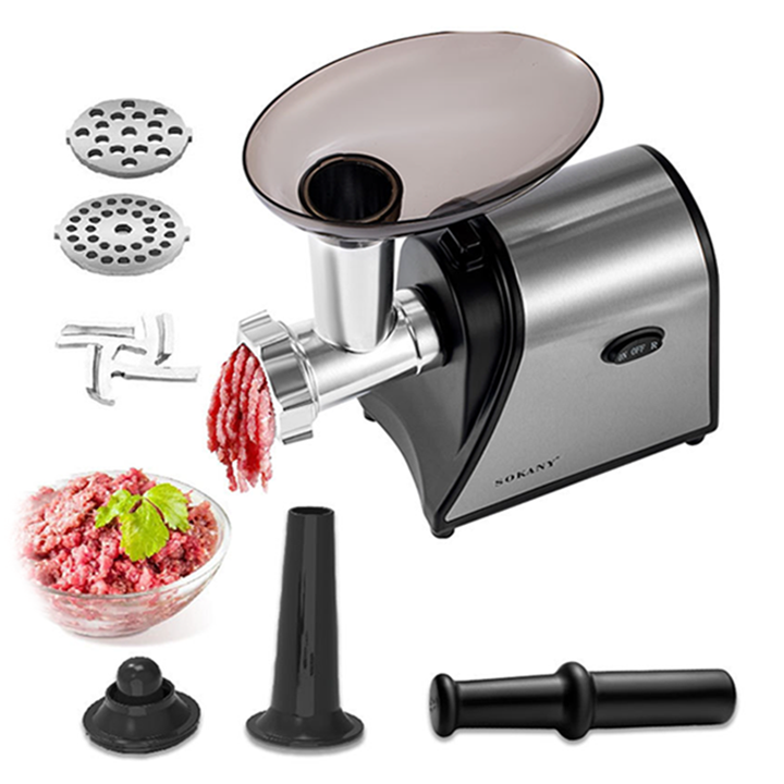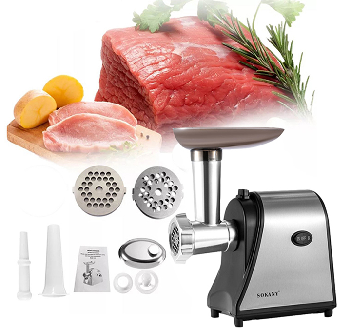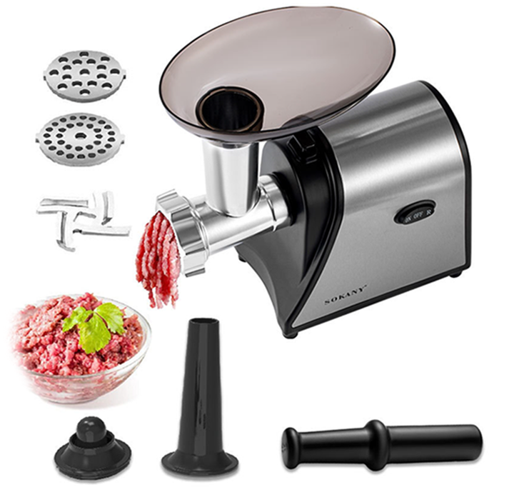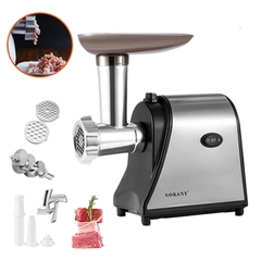 - Thân máy bằng nhựa ABS siêu bền Máy xay thịt SOKANY động cơ 1500W với 2 tốc độ, phù hợp xay hầu hết các loại thịt và thực phẩm trong tích tắc.