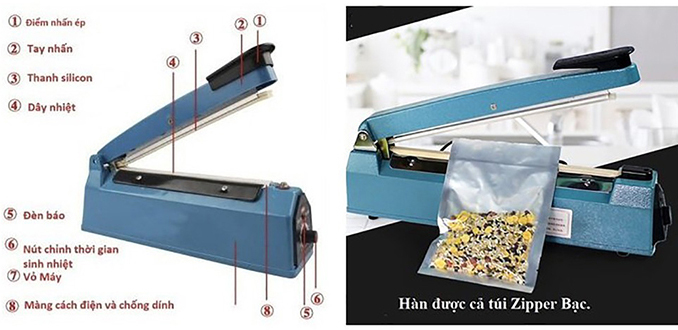 ✅ Chức năng: Hàn túi PP/PE, túi nilon, zip bạc