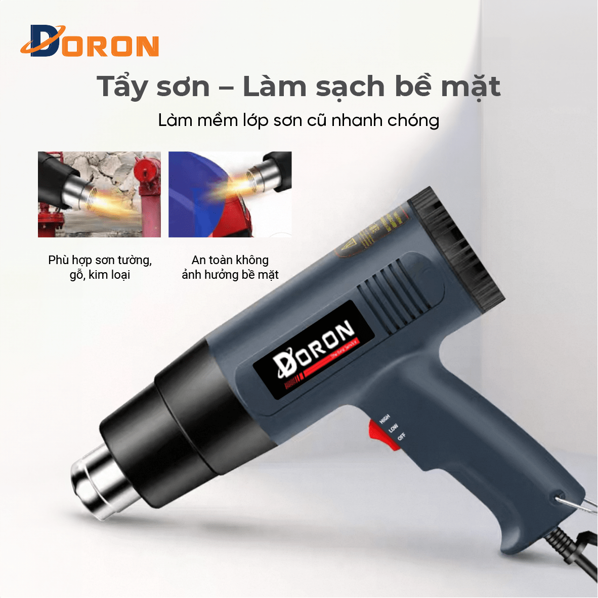 ⭐ Máy khò nhiệt DORON KT806 2500W là loại máy rất hữu ích trong công việc như làm mềm các vật liệu, loại bỏ lớp sơn cũ, đóng gói bao bì, làm co các vật liệu bao bì nhựa như màng co, màng PVC,...