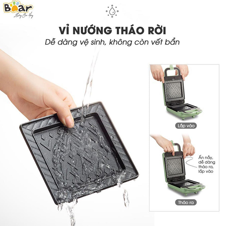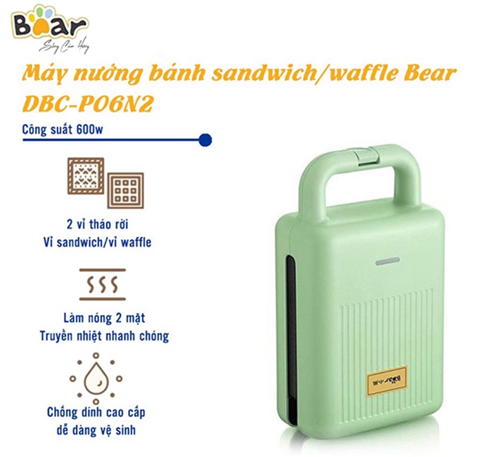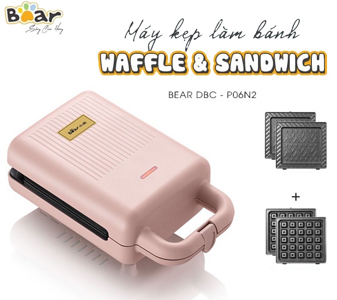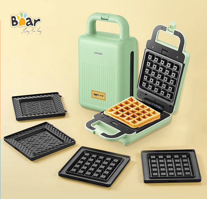 - Máy kẹp nướng bánh Bear có 2 loại vị thay thế: vỉ sandwich & vỉ wafle