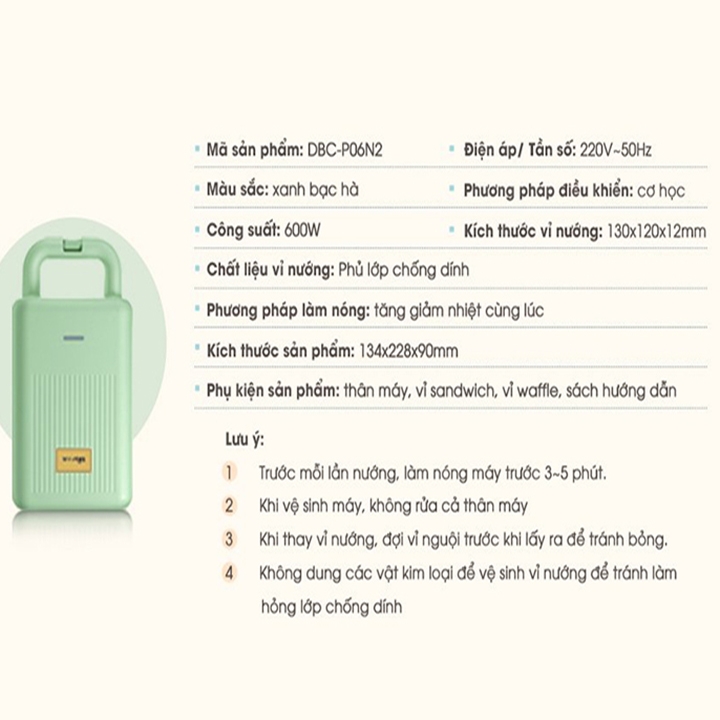| Chức năng | Làm waffle, sandwich, nướng thịt,.. |