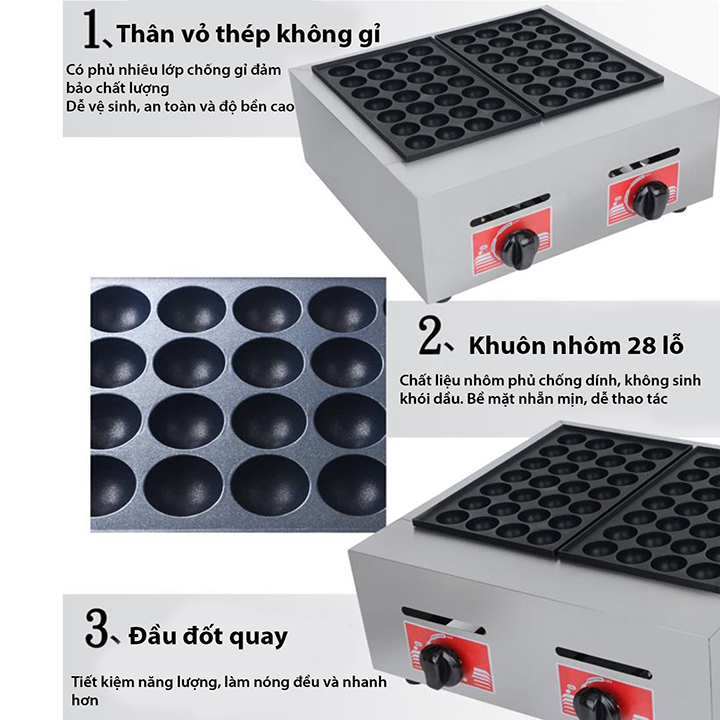 | Chất liệu khuôn | Gang chống dính Teflon |