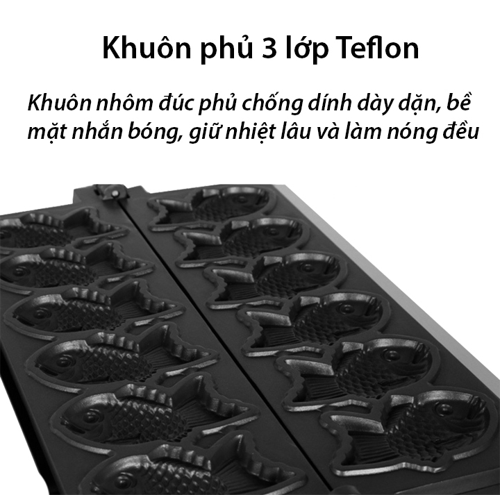 🔥 Khuôn sử dụng lớp chống dính Teflon cao cấp, không làm ảnh hưởng đến hương vị của bột bánh và nhân bánh.