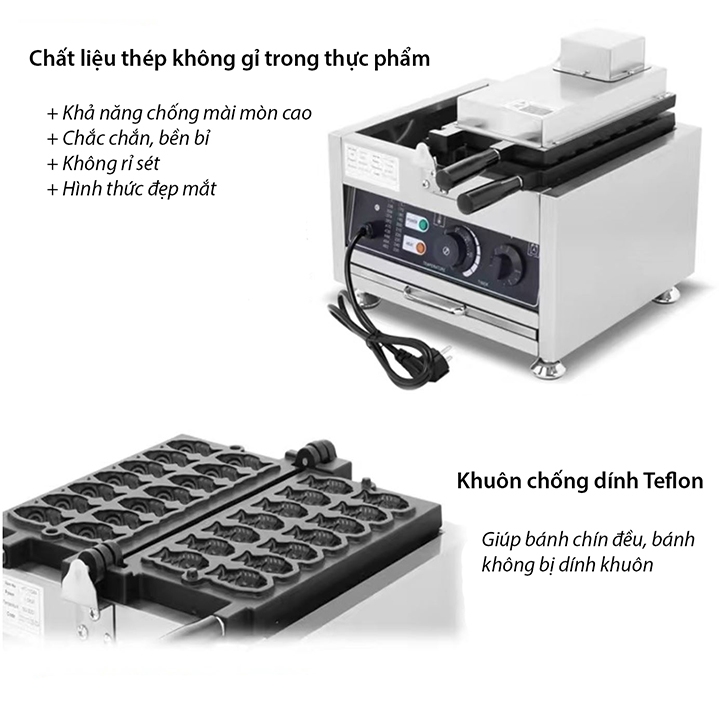 🔥 Sử dụng chất liệu khuôn Teflon cao cấp chống dính tốt, không làm ảnh hưởng đến hương vị của bột bánh và nhân bánh.