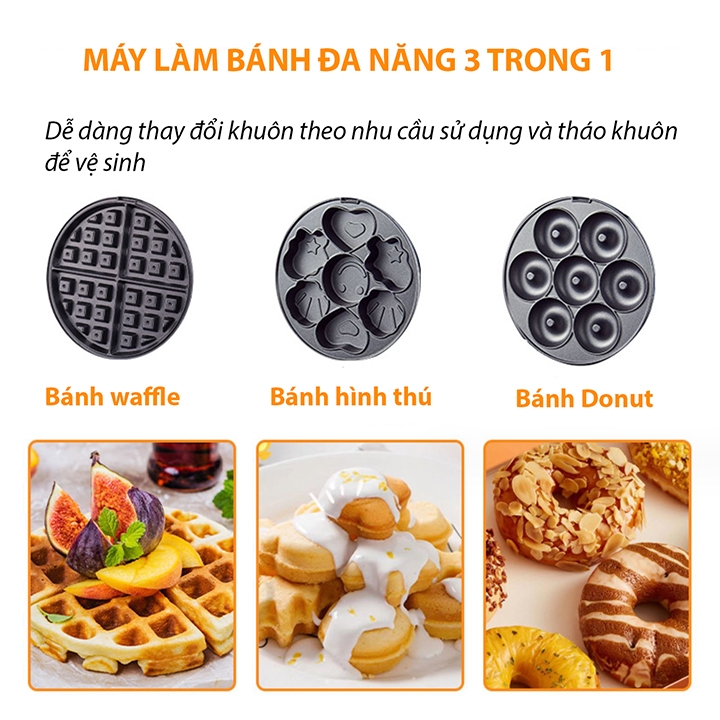 ▶️ Chức năng: Làm donut, hình thú, waffle