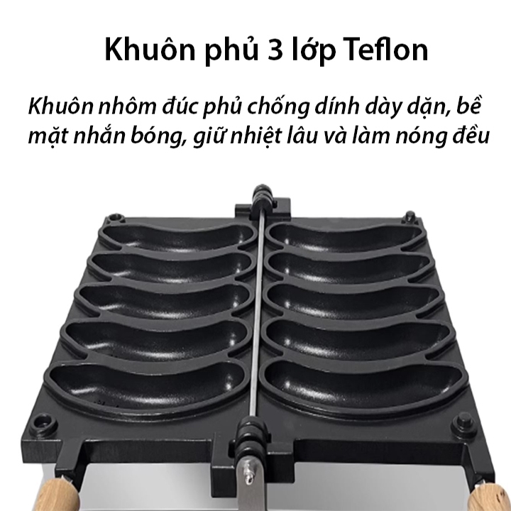 🔥 Khuôn sử dụng lớp chống dính Teflon cao cấp, không làm ảnh hưởng đến hương vị của bột bánh và nhân bánh.