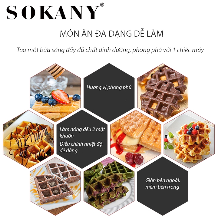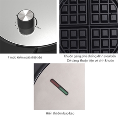 Máy làm bánh đa năng với thiết kế tinh xảo, đơn giản dễ dùng, có thể làm bánh waffle, vị bánh mềm, thơm, dai dai, độ ngọt vừa phải