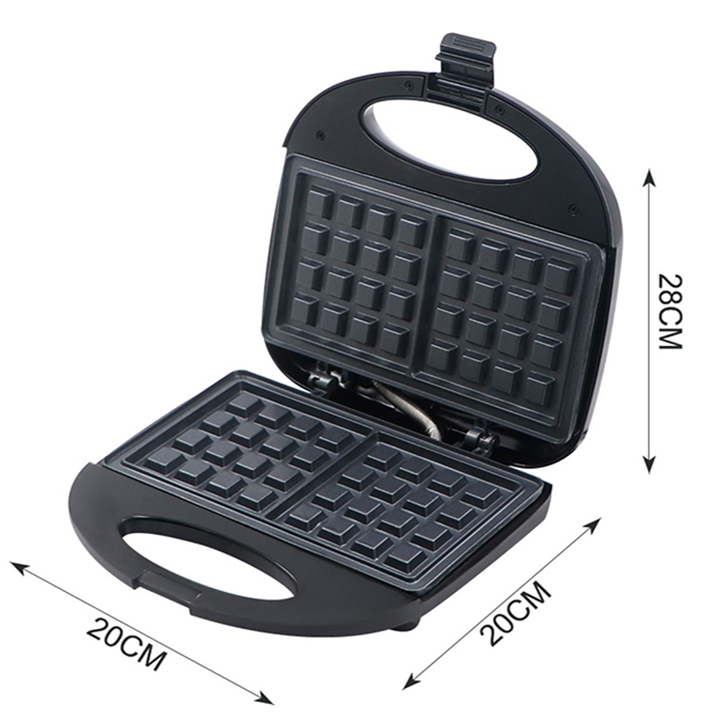 - Máy làm bánh còn có khuôn bánh được thiết kế tối ưu giúp bánh đạt độ nở tốt nhất, bề mặt nướng có kích thước 20cm x 10cm và được phủ lớp chống dính cao cấp giúp thành phẩm bánh làm ra đẹp, đồng thời dễ dàng vệ sinh máy sau khi sử dụng