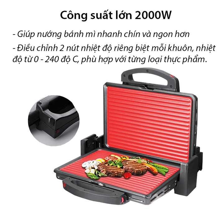 ⭐ Công suất lớn lên tới 2000W giúp kẹp nướng bánh mỳ nhanh hơn