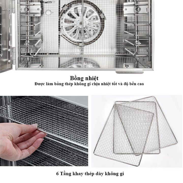 ⭐ Ngoài ra, máy sấy có 6 khay sấy riêng biệt được làm bằng kim loại dạng lưới inox