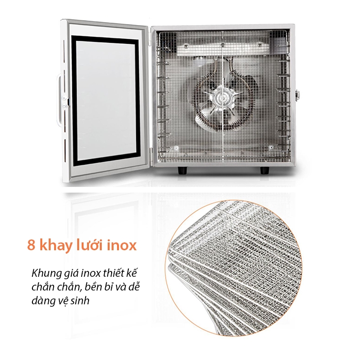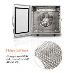 ⭐ Ngoài ra, máy sấy có 8 khay sấy riêng biệt được làm bằng kim loại dạng lưới inox