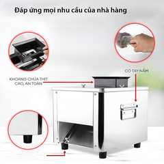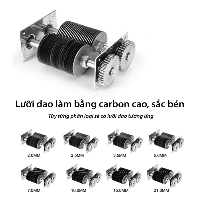Thuộc dòng máy cắt thịt có bộ dao cố định nên không thể thay đổi kích thước theo nhu cầu. Mỗi máy chỉ thái được một kích thước cố định