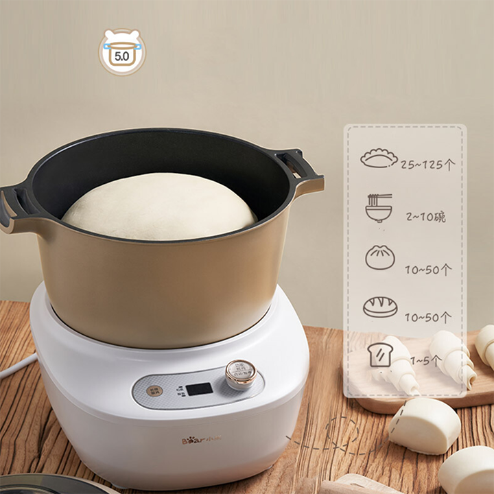 - Tô trộn của Máy nhồi và ủ bột, nồi ủ và nhồi bột bear HMJ-A50E2 model mới của hãng máy BEARcó dung tích lớn lên đến 5L được làm bằng chất liệu inox 304 chắc chắn, bền bỉ, an toàn và không làm hao bột.