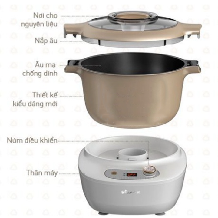 - Thân Máy nhồi và ủ bột, nồi ủ và nhồi bột bear HMJ-A50E2 model mới của hãng máy BEAR chắc chắn, lớp đáy bowl chống rung và 4 chân bọc cao su chắc chắn, chống rung lắc và trơn trượt trong quá trình hoạt động.