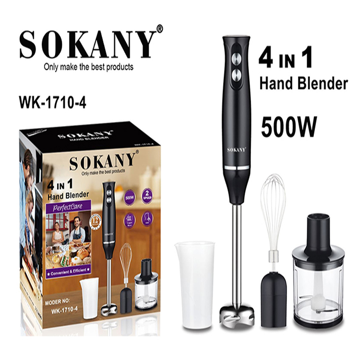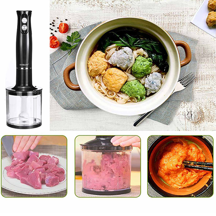 Máy xay cầm tay SOKANY công suất 500W mạnh mẽ, động cơ hiệu suất cao và thiết kế tiện dụng độc đáo, cung cấp hiệu quả xay nhanh và mịn chỉ bằng cách nhấn nút, giúp bạn tiết kiệm thời gian khi chuẩn bị những món ăn bổ dưỡng tự làm tại nhà mỗi ngày.