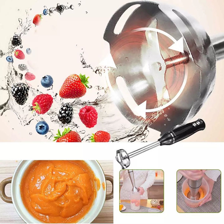 ⭐ Ưu điểm của nó là gọn nhẹ hơn máy xay sinh tố kiểu cũ và có thể xay ngay trong nồi, trong bát hoặc cốc đựng mà không cần san qua sớt lại nhiều lần dễ nhiễm khuẩn.