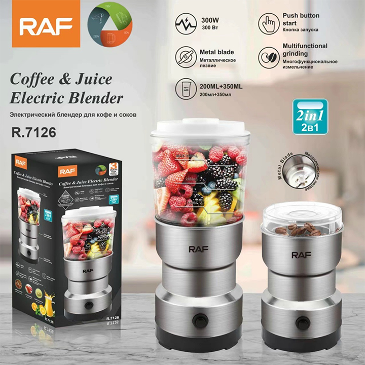 Máy xay/nghiền ngũ cốc, cà phê, đồ ăn dặm, sinh tố, rau củ đa năng mini cầm tay RAF R.7126 2IN1
