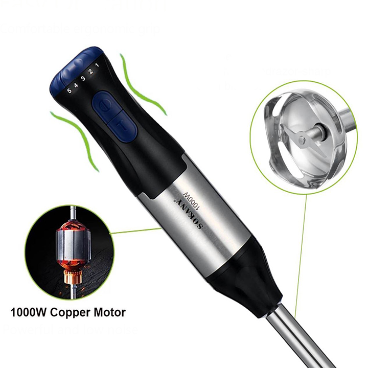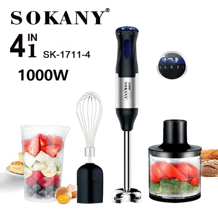 Máy xay cầm tay SOKANY SK-1711 Công Suất 1000W mạnh mẽ, động cơ hiệu suất cao và thiết kế tiện dụng độc đáo, cung cấp hiệu quả xay nhanh và mịn chỉ bằng cách nhấn nút, giúp bạn tiết kiệm thời gian khi chuẩn bị những món ăn bổ dưỡng tự làm tại nhà mỗi ngày.